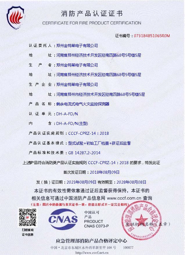 鄭州金特萊電子有限公司成立于2006年,是集研發(fā)、生產(chǎn)、銷售、服務(wù)為一體的綜合性高新科技企業(yè)。公司致力于DH-A系列電氣火災(zāi)監(jiān)控系統(tǒng),智慧用電,智慧消防,智慧斷路器,消防設(shè)備電源監(jiān)控系統(tǒng),防火門監(jiān)控系統(tǒng),控制與保護(hù)開(kāi)關(guān),智慧消防云平臺(tái),微機(jī)保護(hù)裝置,多功能電力儀表,電氣火災(zāi)報(bào)警系統(tǒng),剩余電流式電氣火災(zāi)監(jiān)控探測(cè)器,電氣火災(zāi)監(jiān)控設(shè)備,漏電火災(zāi)探測(cè)器,故障電弧探測(cè)器等產(chǎn)品的廠家。